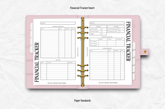Financial Tracker Insert-Paper Standards